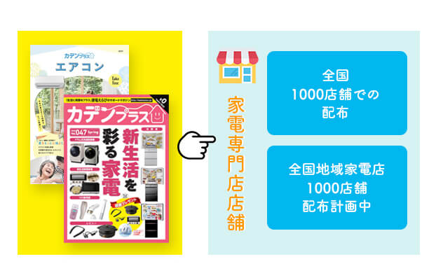雑誌「カデンプラス」は、全国の家電量販店の店頭に置かれ、購入を決めた方や、そろそろ買い替えたいと検討を始める方たちに読まれています。
